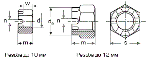 Размеры корончатых гаек DIN 935-1 в мм