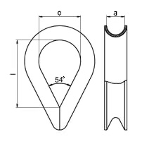 | Диаметр троса, мм | a, мм | c, мм | l, мм | Вес, кг/100шт. |