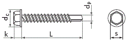 DIN 7504 K Саморез по металлу с буром (JP76), шестигранная головка с буртиком. Резьба согласно DIN 7970, ISO 1478. Саморезы по металлу DIN 7504 K позволяют закреплять различные материалы к металлу толщиной до 4 мм без предварительного сверления.